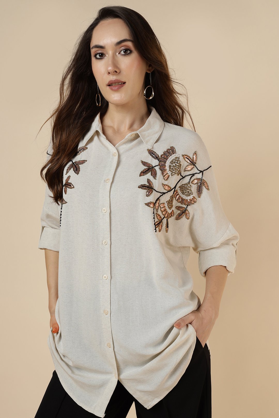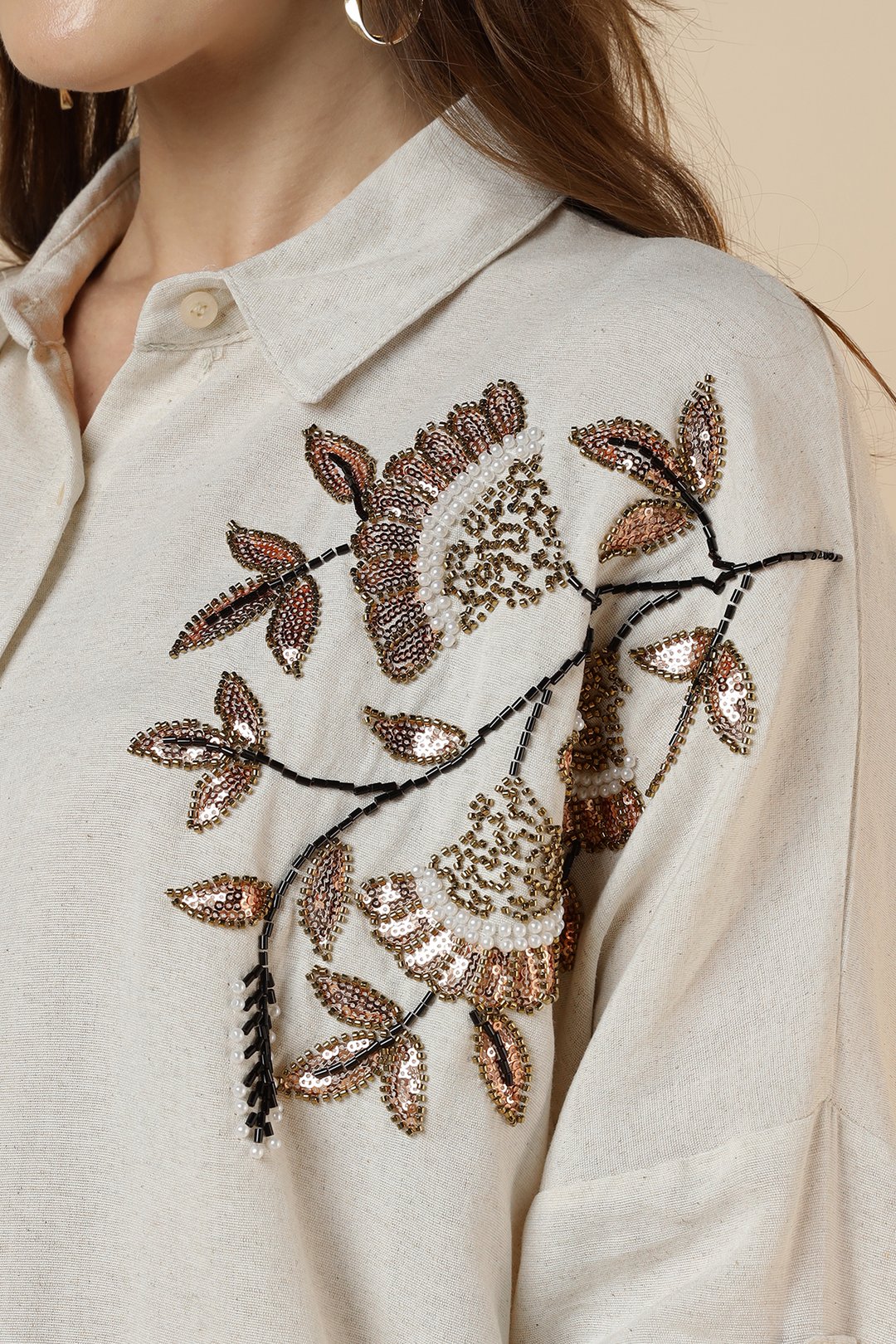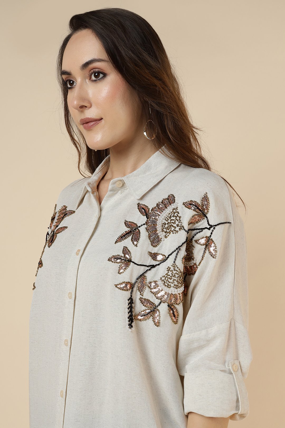 Shoulder Heavy Sequence Tulip Shirt