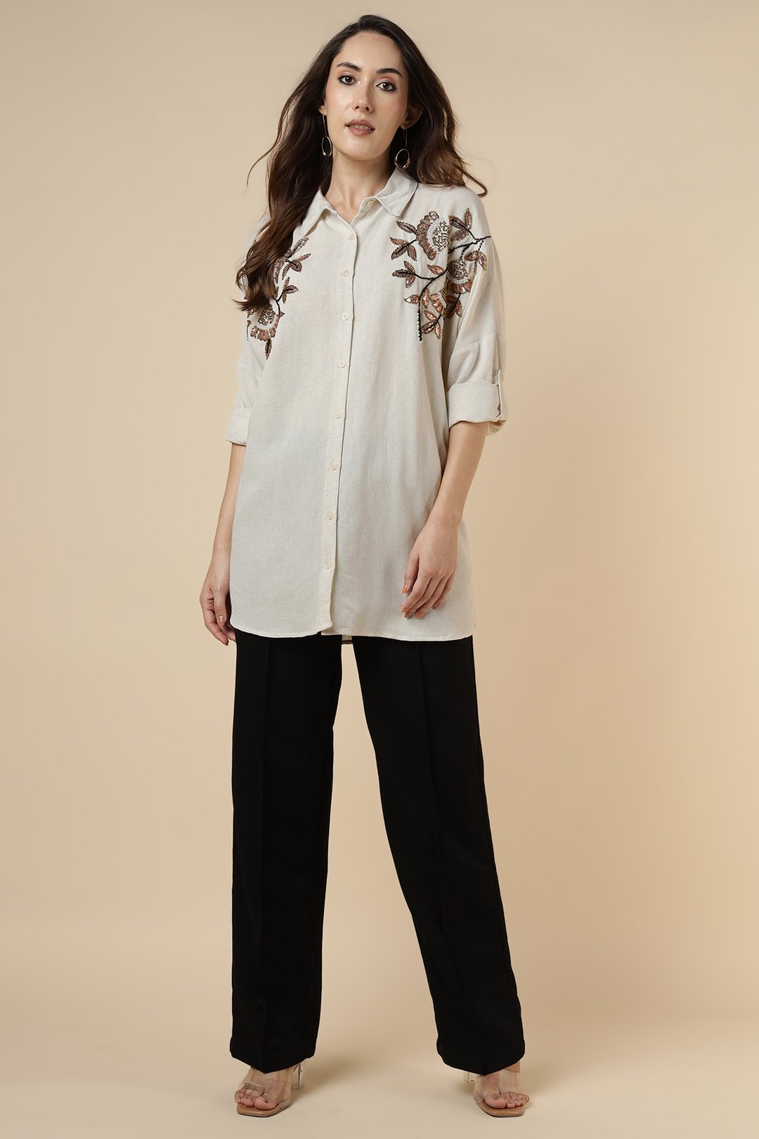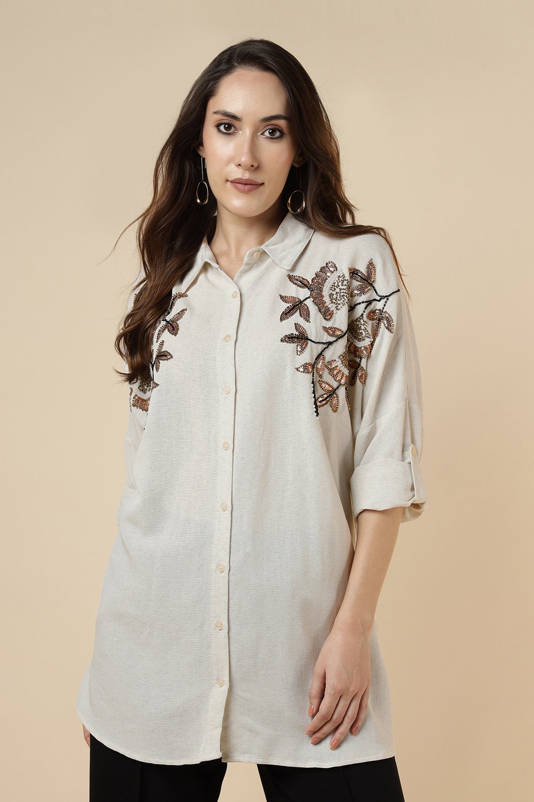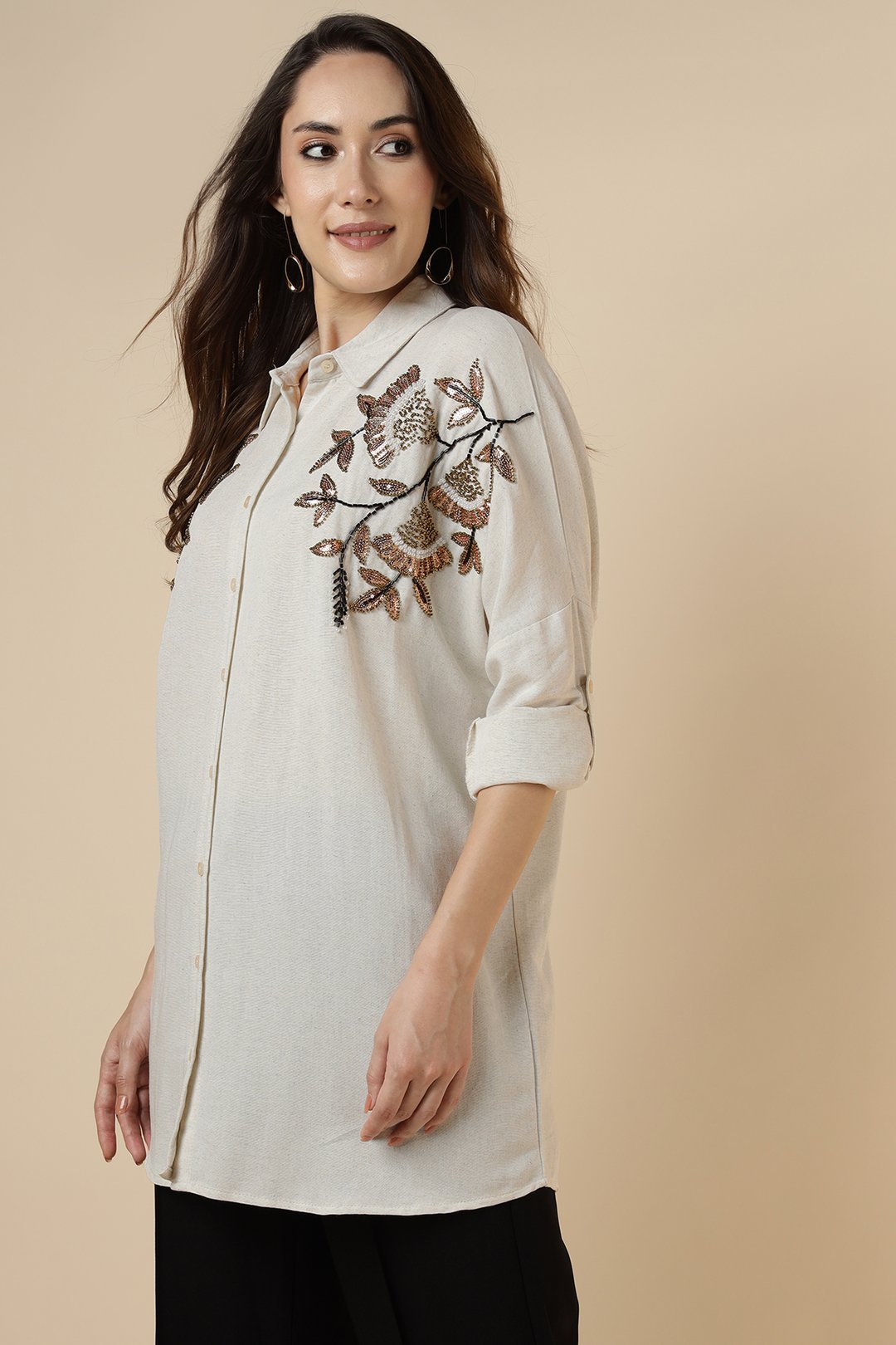 Shoulder Heavy Sequence Tulip Shirt