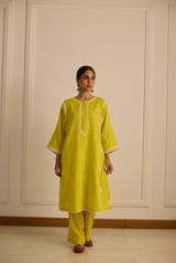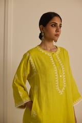 Yellow Cotton Straight Kurta Set with Chikankari Embroidery