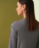 Grey Textured High Neck Midi Dress