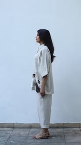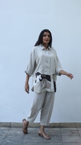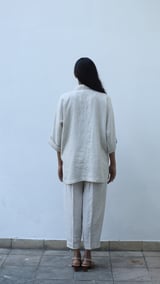 Beige Pure Linen Straight-Leg Lounge Trousers