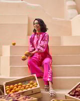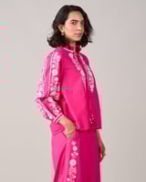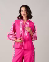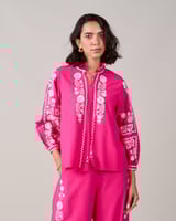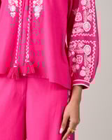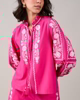 Pink Embroidered Longline Tie-Up Tunic Top