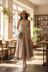 100% Linen Midi Dress in Beige