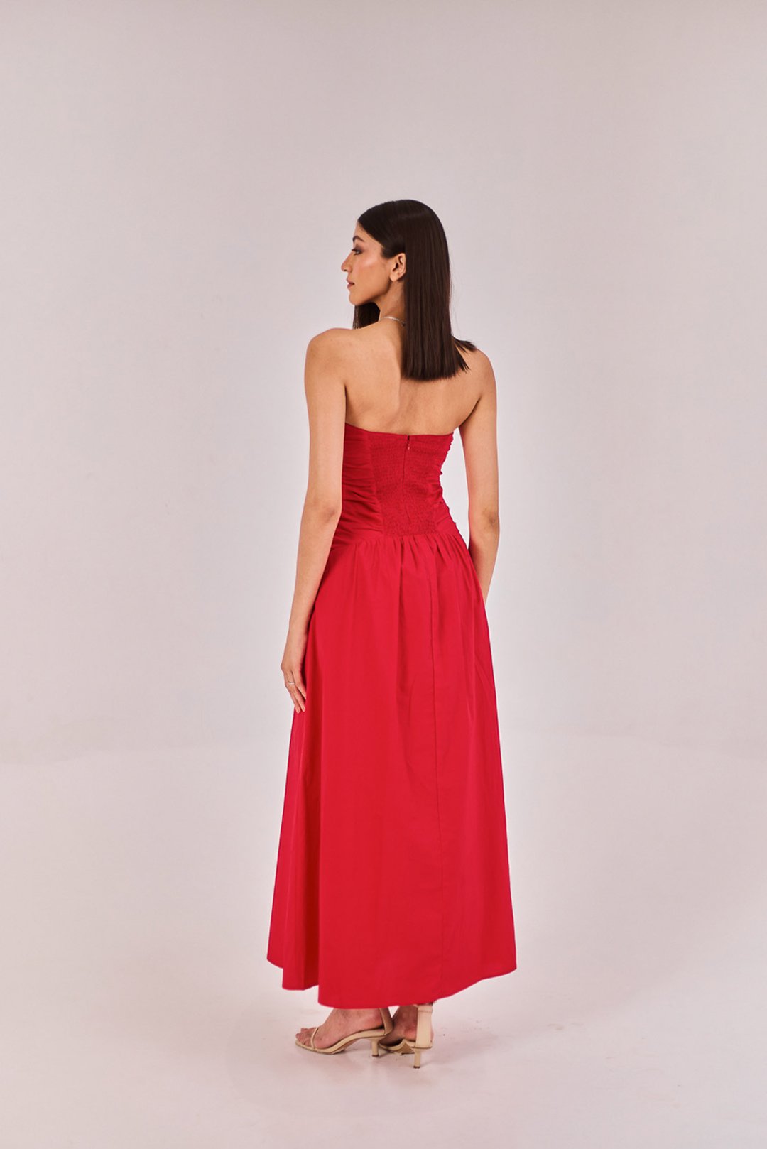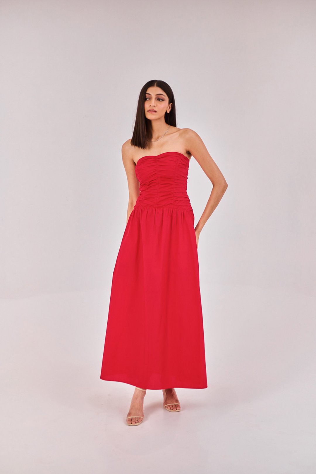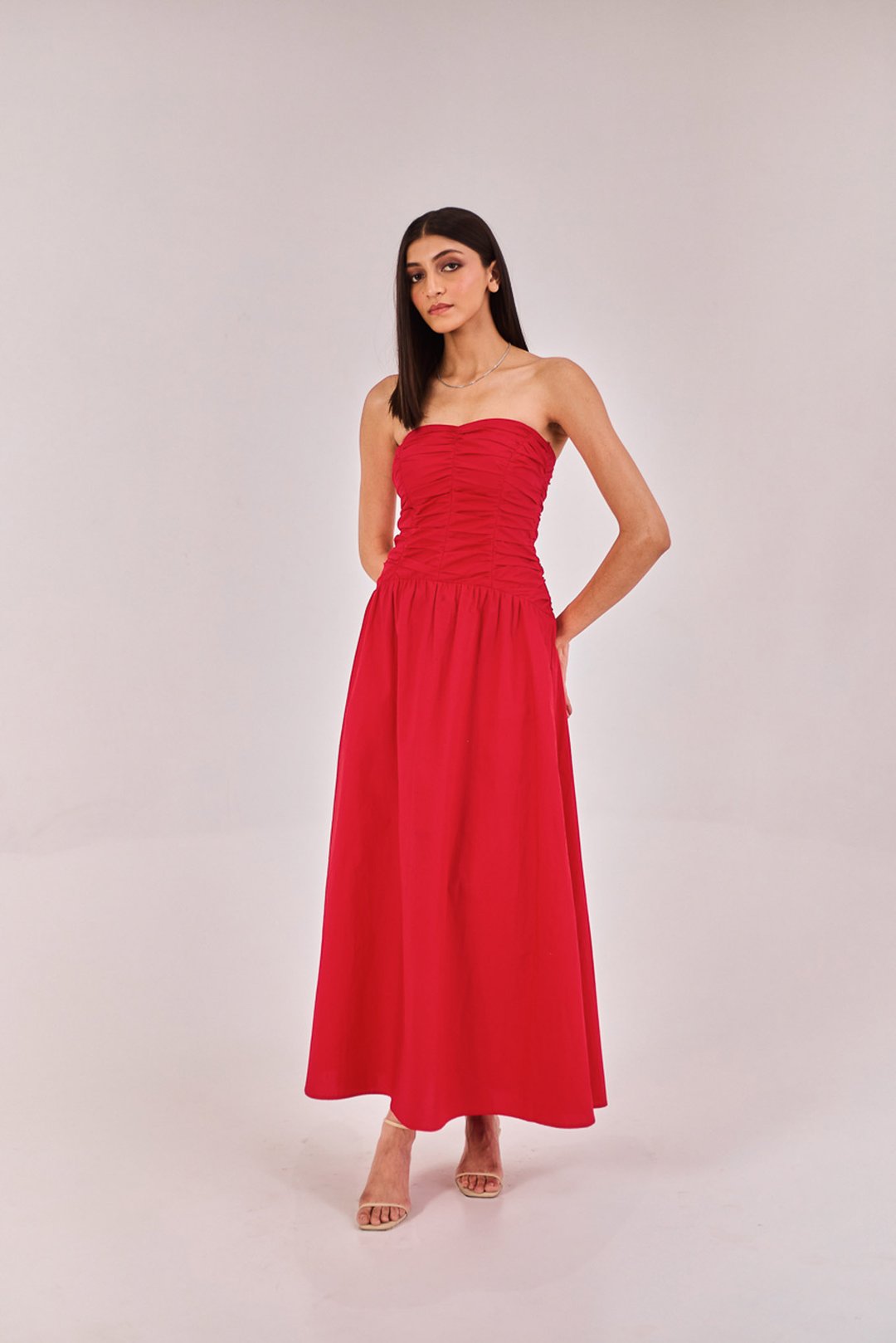 Red Strapless Midi Dress