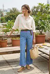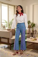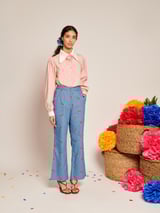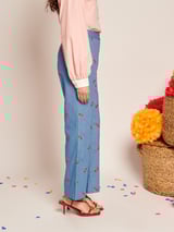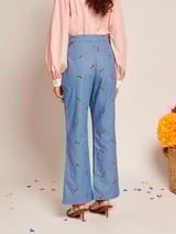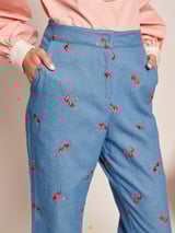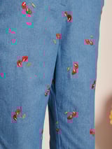 Blue Cherry Embroidered High-Waist Flared Denim Trousers