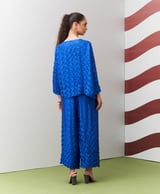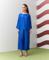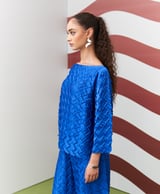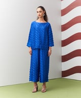 Blue Crepe Satin 3D Pleated Co-ord Set